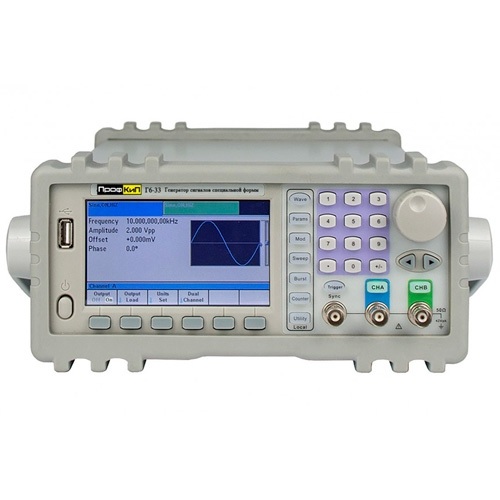 Генераторы сигналов специальной формы двухканальные ПрофКиП Г6-33 созданы для воспроизведения высокостабильных по частоте сигналов синусоидальной, прямоугольной, треугольной, импульсной формы, а так же шумового сигнала и напряжения постоянного тока. Генераторы воспроизводят так же сигналы произвольной формы, имея 50 заводских предустановок, и возможность программирования формы выходного сигнала оператором.